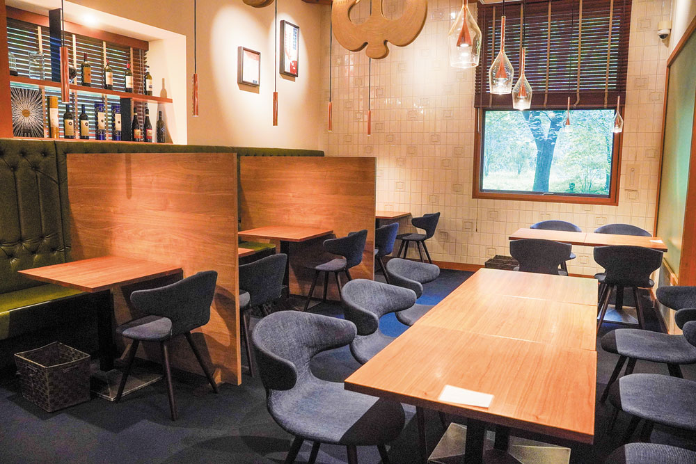 ゆったりと配された店内席のほかに、開放的なテラス席も有