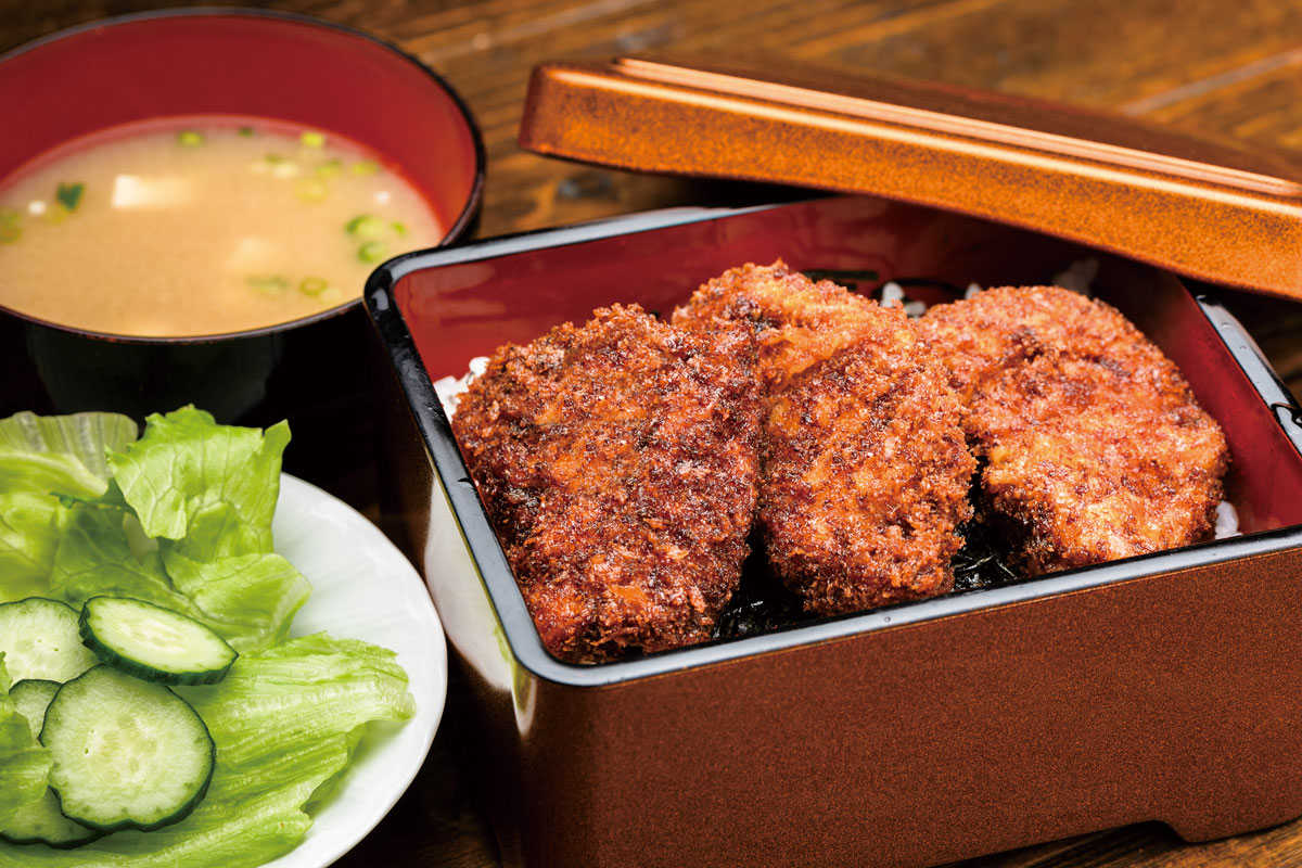 自家製秘伝ソースが味わい深いソースカツ重:ヒレ(味噌汁・サラダ付)