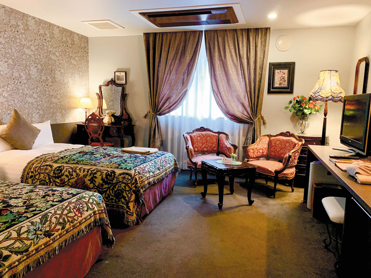 隠れ家のように落ち着いた雰囲気が漂うアンティークホテル。宿泊者は自由にワインバーを楽しめます。