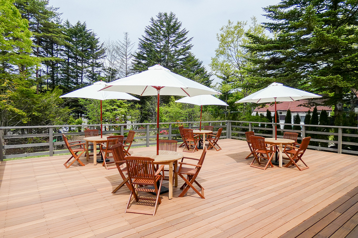 5月20日オープン予定の軽井沢町内3店舗目となる軽井沢バイパス店の内覧会に行ってきました。 店内はPACIFIC FURNITURE SERVICEの石川容平氏デザインにより、ゆったりくつろげる落ち着きのある雰囲気。店内喫茶スペースの他、コーヒー豆や器具、どら焼きなどが揃う充実したショップコーナー、軽井沢の自然を満喫できるウッドデッキのテラス席(テラス席はペット同伴可)も完備。喫茶では香り高い高品質のコーヒーと共に長野県産100%のそば粉を使用したガレットやクレープ、ソフトクリーム、ケーキも楽しめます。