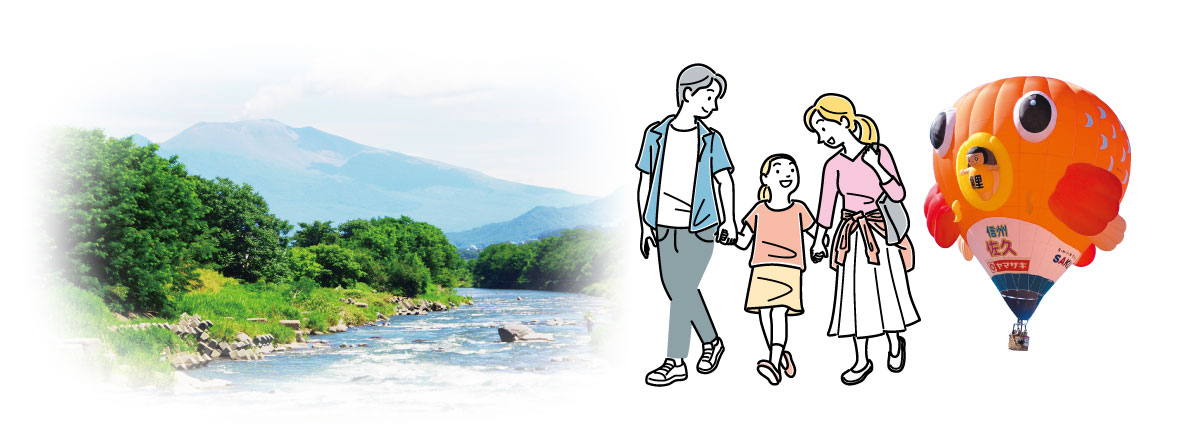 北に浅間山、南に八ヶ岳連峰を望み、街の中央を清流・千曲川が流れる佐久。自然が育む清らかな水や空気、歴史情緒漂う街並み、高原ならではのレジャーなど、見どころが満載です。
