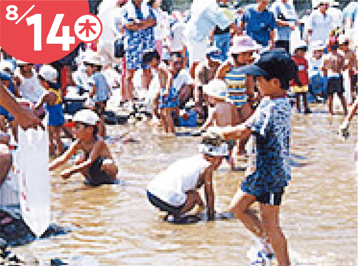 日中は、魚のつかみ取りや盆踊り、太鼓の演奏など、夜には納涼花火大会にて約2,000発の花火が夏の夜空を彩ります。