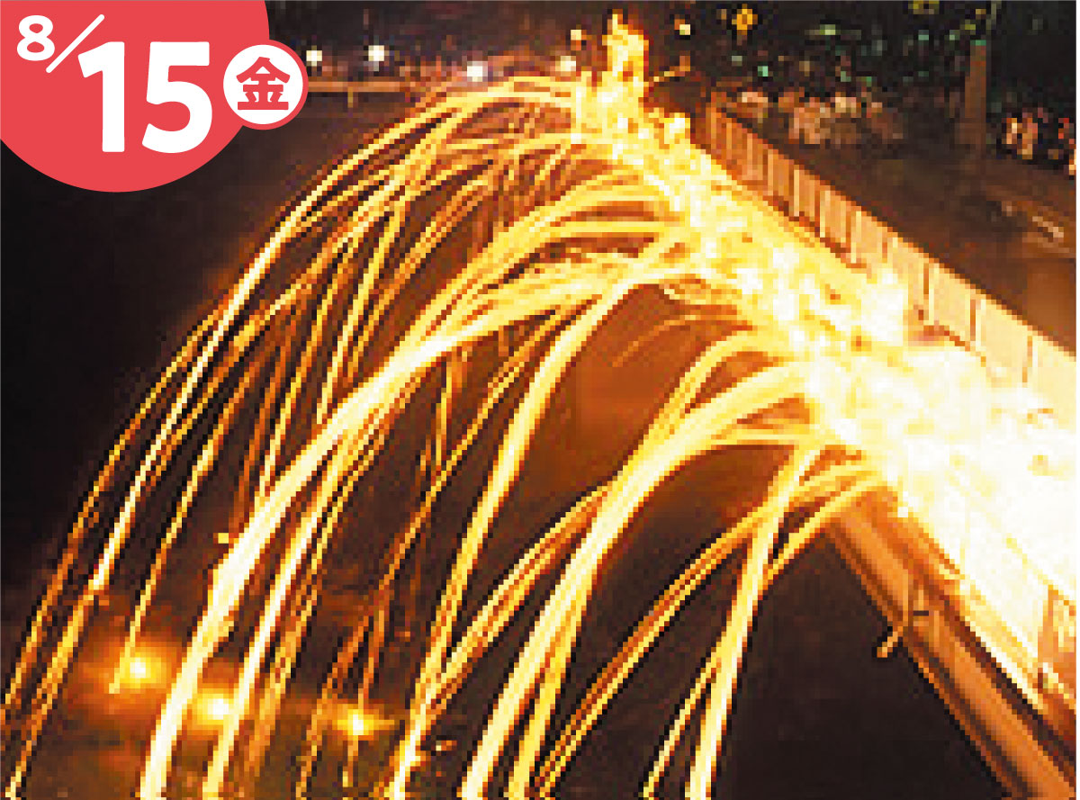火と榊によって一切の不浄を払い浄め、五穀豊穣や無病息災を祈る幻想的な火祭り。神輿の練り歩き、望月太鼓の演奏や民謡流しの他、真夏の夜に松明を手に山から駆け下り、その炎を鹿曲川へと投げ込み、榊の神輿を地面に叩きつけ水を掛け合う光景は圧巻です。