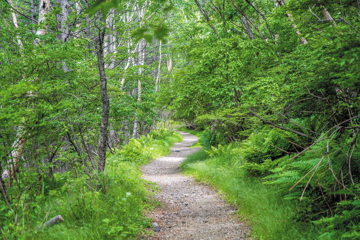 ④登山口~分岐/登山道は歩きやすく整備されているので、カラマツの森の中を野鳥のさえずりを楽しみながら進めます