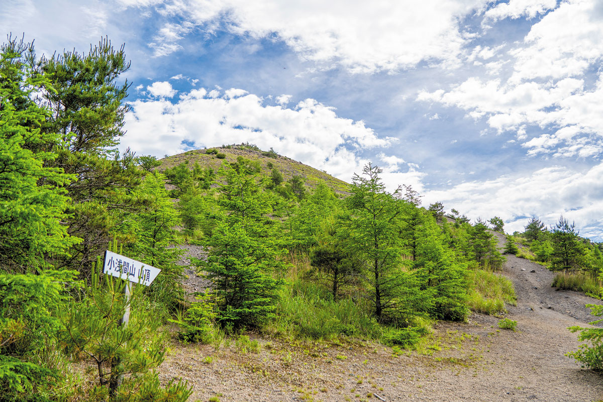 ③浅間山登山口/登山口周辺からは小浅間山が見えます。東京大学の浅間火山観測所裏手にある登山道から出発。登山カードを必ず提出しましょう