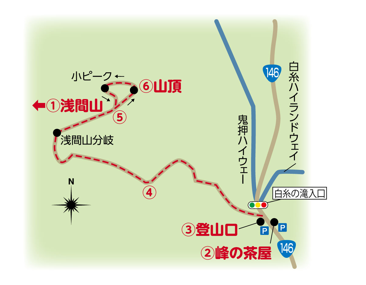 ⑤分岐~山頂/馬返しと呼ばれる浅間山へ続く道との分岐点。ここから砂礫の急斜面が続く本格的な登山になるので十分注意を