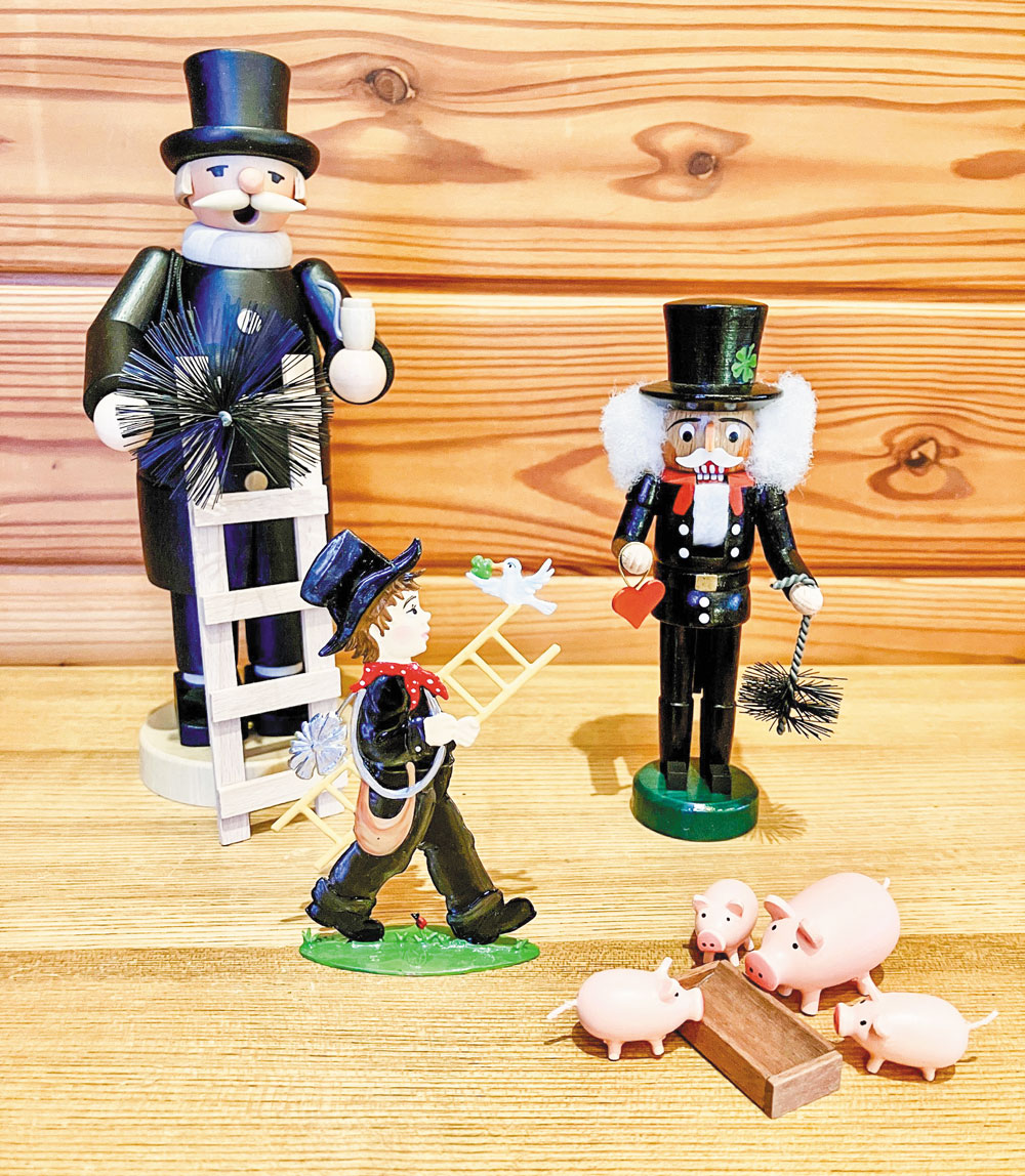 幸運の象徴といわれる「えんとつ掃除人の人形」と、ぶたのミニチュア
